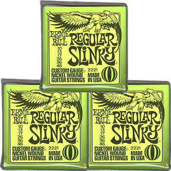 ERNIE BALL 【アーニーボール】 定番エレキギター弦 2221×3セット 価格: 1,500円 レビュー評価: 5.0 レビュー数:1 【送料区分:Sサイズ】 ※クロネコ・メール便発送のため、配送日時指定は行えません。配送日時指定ご希望の場合は追加料金にて承りますので、ご購入手続きの際にお申し付けくださいませ。 (備考欄等に配送切り替え希望とご記入ください。) 世界中のトップ・ギタリストから圧倒的な支持を得ているスタンダード・スリンキー・シリーズは、スズ・メッキしたヘックス・スティール・コア(六角形の芯線)にニッケル・メッキ・スティール・ワイヤーを巻いたワウンド弦と、高硬度のスズ・メッキしたハオ・カーボン・スティールのプレーン弦を組み合わせたゲージ・セットです。 癖がなくバランスのとれたサウンドが特徴です。 ●各弦のゲージ( Supported by 楽天ウェブサービス |